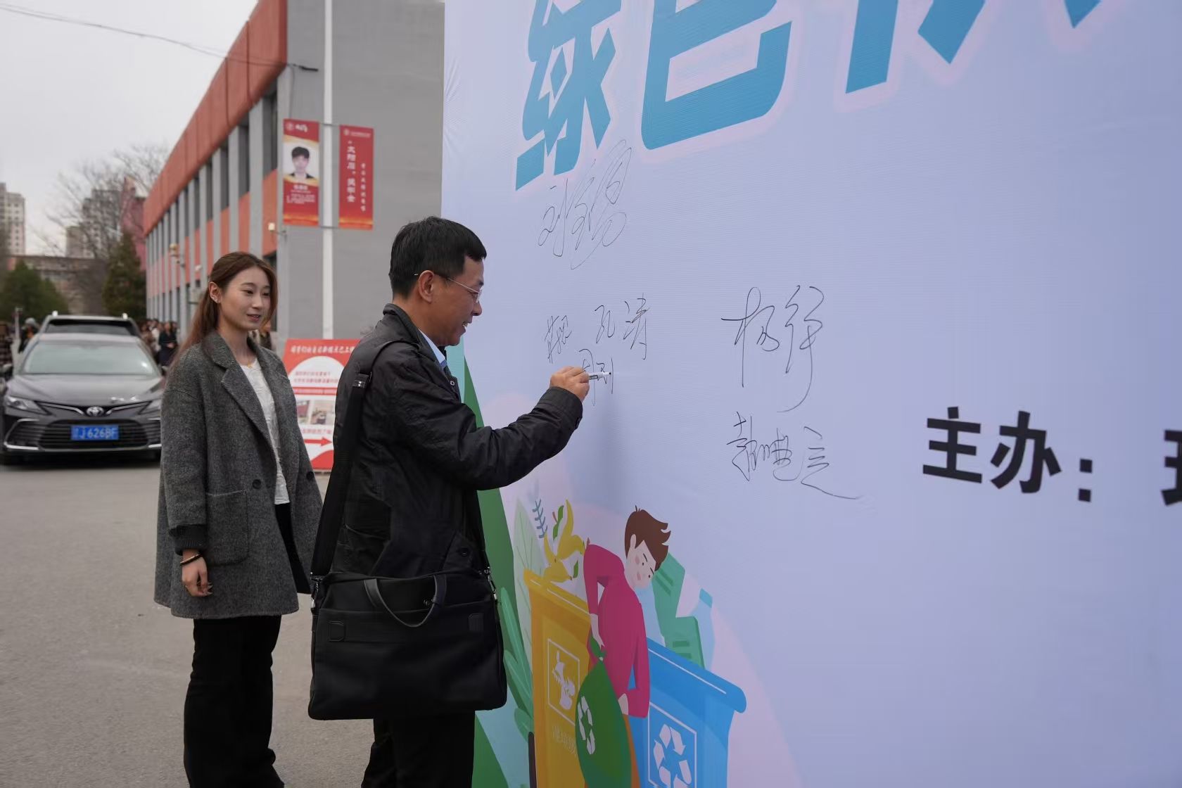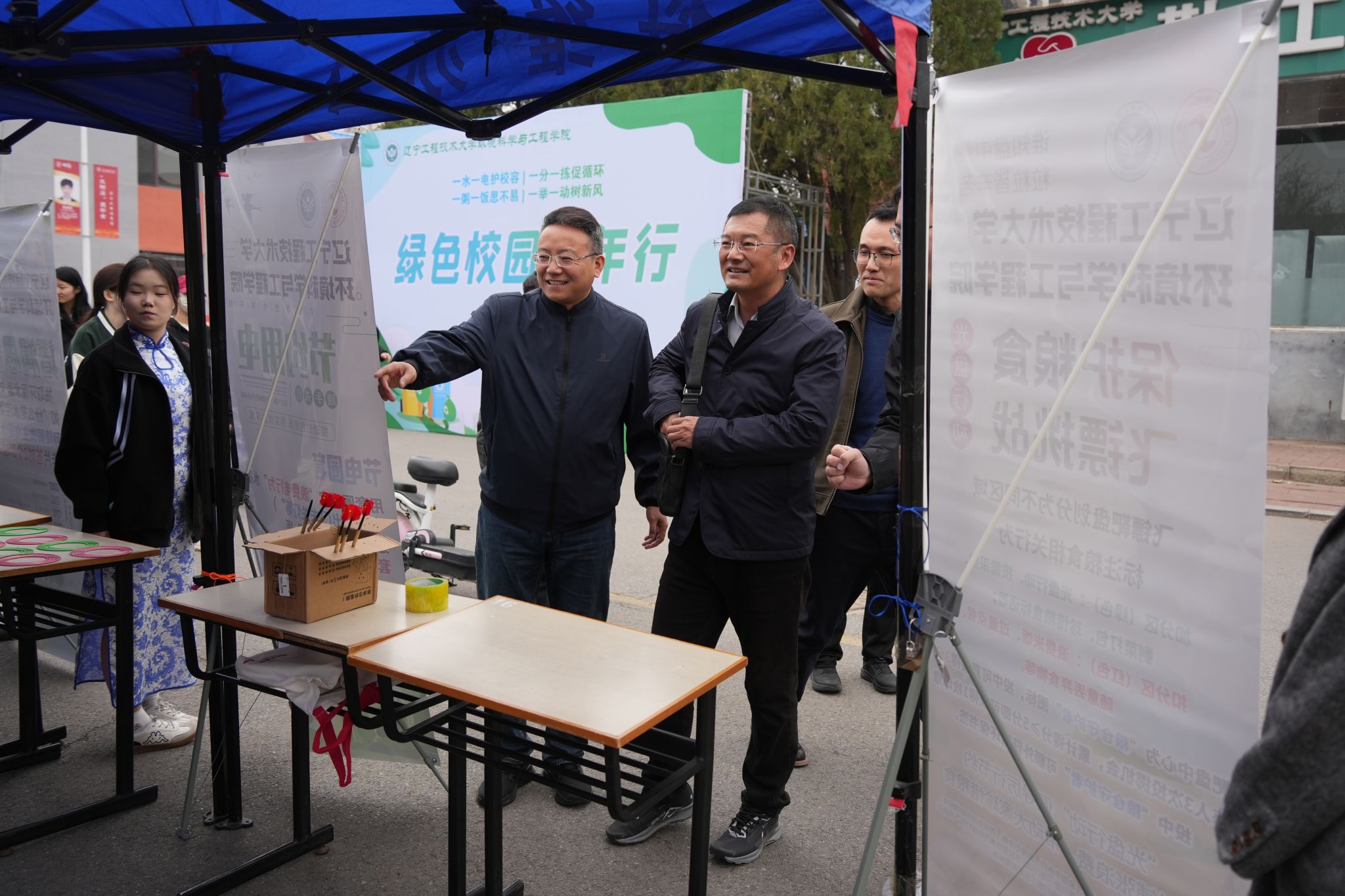 在中华路校区举办读经典,话时代,青年行系列活动之绿色校园青年行环保教育活动。院党委书记杨铮、院长赵晓亮,院党委副书记蒋思、副院长刘宝勇,副院长孔涛与500余名师生共同参与活动,践行生态文明理念。